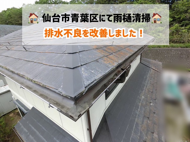 2025/07/23  仙台市青葉区にて落ち葉で詰まった雨樋の清掃を行い、排水不良を改善しました!