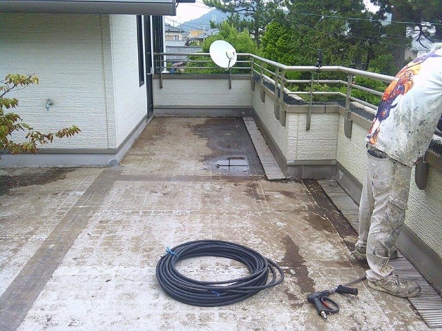 みなさま、こんにちは!街の屋根やさん飯田・伊那店です!飯田市にて、「屋根を軽くして、地震時の安全性を高めたい」とご希望のT様邸屋根葺き替え工事が完成しました。前回のブログまでに、T様邸屋根葺き替えまでの一連の様子をご紹介してきましたが、今回のブログでは、傷んだ雨樋の交換工事と、トタン屋根の塗装 ...続きを読む2025/07/17 沼津市で豪雨時に雨漏りしたベランダの防水工事~高圧洗浄作業を実施!