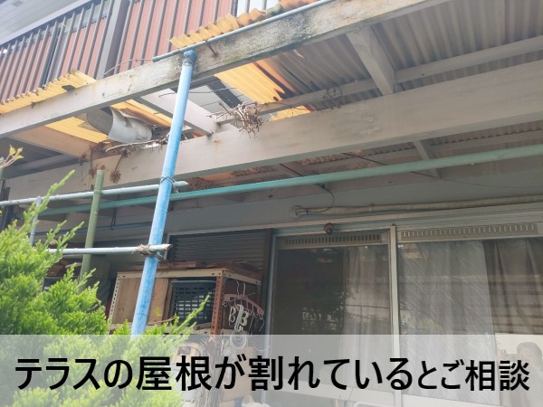 岡崎市の皆さんこんにちは。街の屋根やさん豊橋店です。今回は「瓦の棟から木が生えているんです…」というお問合せを受け無料調査を実施。結果、瓦屋根の棟積み直し工事を行うこととなりました。棟積み直し工事とはどのような工事なのか?またなぜ棟積み直し工事を行わないといけなかったのかを、工事の様子とともにお ...続きを読む2025/07/18 【菊池郡大津町】テラスの波板屋根が割れているとのご相談|塩ビ波板の劣化と補修方法をご紹介