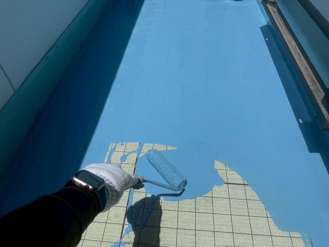 宮城県にお住まいの皆さんおばんです!街の屋根やさん仙台太白店 富永です😄✨近年は、局地的な大雨や強風が多く、屋根材の劣化や飛散のご相談が増えています!今回は、岩沼市にお住まいのお客様より「屋根の一部が浮いてきたように見える」とのお問い合わせをいただき、現地調査から部分差し替え工事 ...続きを読む2025/07/17 名古屋市守山区で経年劣化したFRP防水の上からウレタン防水通気緩衝工法を実施、防水膜を形成しトップコートで施工を完了する様子