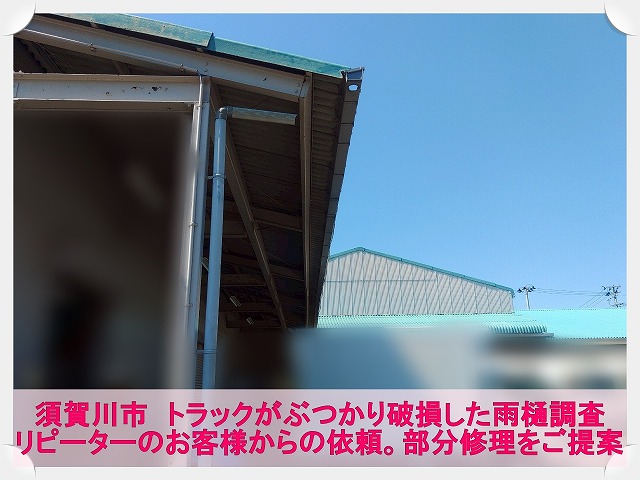 雨漏りを防ぐ“屋根の頂点”にこだわる!終盤の施工レポート 瀬戸市で進めているスーパーガルテクトのカバールーフ工事も、いよいよ終盤に差しかかってきました💪今回は下屋部分の棟(むね)施工、そして小さな切妻(きりづま)屋根の葺き替えまでをしっかりと仕上げました& ...続きを読む2025/07/10 須賀川市にてトラックの荷台がぶつかり破損した雨樋の調査。部分修理工事をご提案