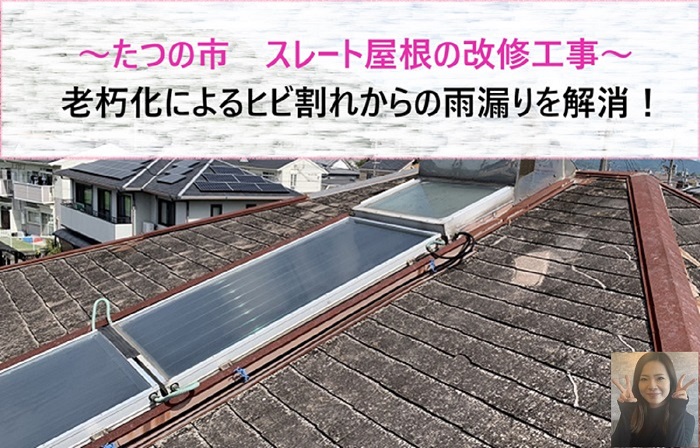 こんにちは。街の屋根やさん名古屋南店です。 前回のブログでは、名古屋市瑞穂区の住宅にて実施している外壁塗り替え工事の庇板金や雨押え板金への塗装工程の様子をお伝えいたしました。 今回は、基礎水切りや換気フードなど、その他鉄部に対する塗装工程について、その施工の様子をご紹介したいと思います。 ...続きを読む2025/07/14 たつの市 老朽化で割れや棟板金の錆が発生し雨漏りしているスレート屋根改修工事!【サキブログ】
