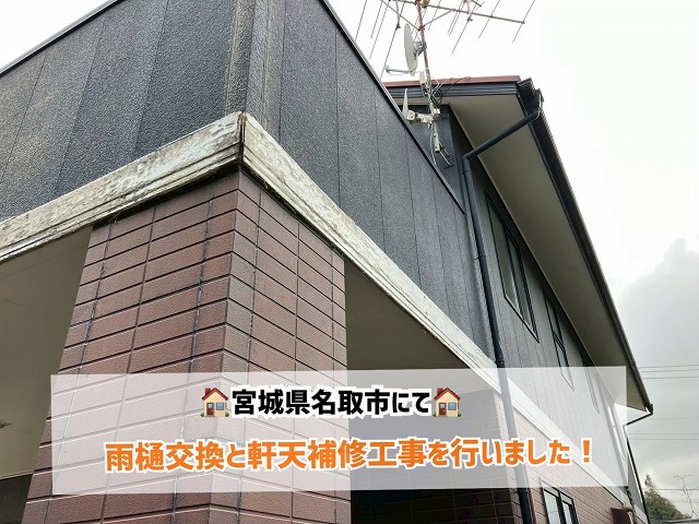 お家の印象は外壁でガラリと変わります!~外壁塗装施工事例 さいたま市北区の皆様こんにちは!街の屋根やさんさいたま大宮店です☆彡さいたま市北区にお住まいのお客様から、「外壁の色が褪せてきたので、塗装で家の印象を変えたい」とのご相談をいただきました!(^^)!お話を伺うと、築 ...続きを読む2025/07/2 名取市にて雨樋交換と軒天補修工事!破損箇所を一新して安心の外観に!
