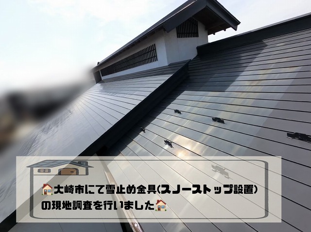こんにちは!街の屋根やさん金沢南店です。とても暑い日でしたね💦明日以降も真夏日が続くようです。水分補給をしっかりと取りましょうね!!白山市のお客様より、2階から1階に沿った雨樋と、玄関の細い雨樋の修理をしてほしいとのお問い合わせをいただき、現場調査にお伺いしました。 ...続きを読む2025/07/3 大崎市にて雪止め金具(スノーストップ設置)の現地調査を実施しました!