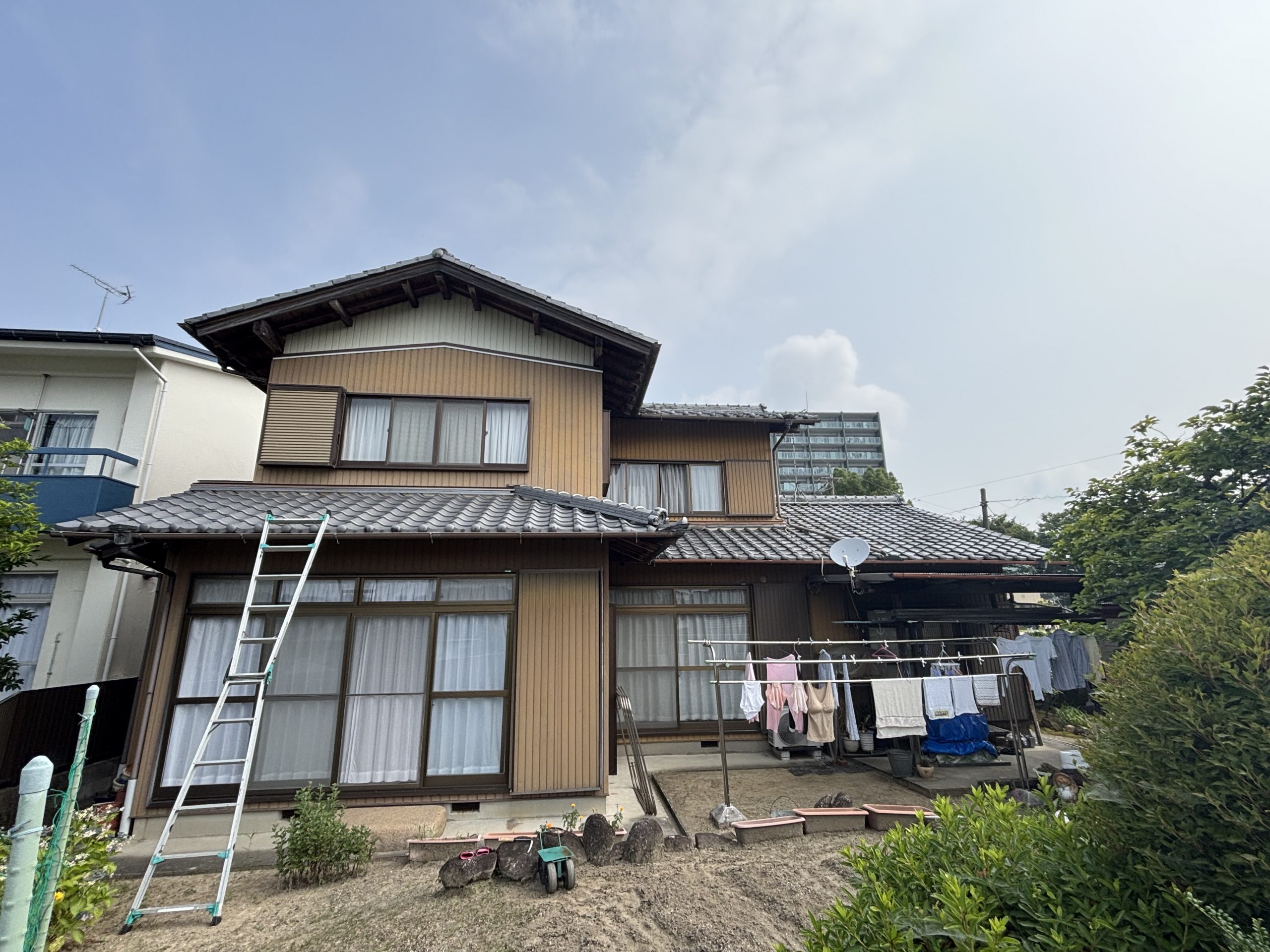 三重県名張市でモルタルの外壁に多数のひび割れがあり、現地調査にお伺いしました。 約15年ほど前にこちらの家に移り住まれ、その時に外壁を新しく塗り替えてくれてあったそうです。それから15年が経ち経年劣化が心配な時期になりました。 ...続きを読む2025/07/3 築40年のいぶし瓦屋根を「スーパートライ」で軽量・耐震化!太陽光パネル設置に向けた春日井市高蔵寺町での現地調査