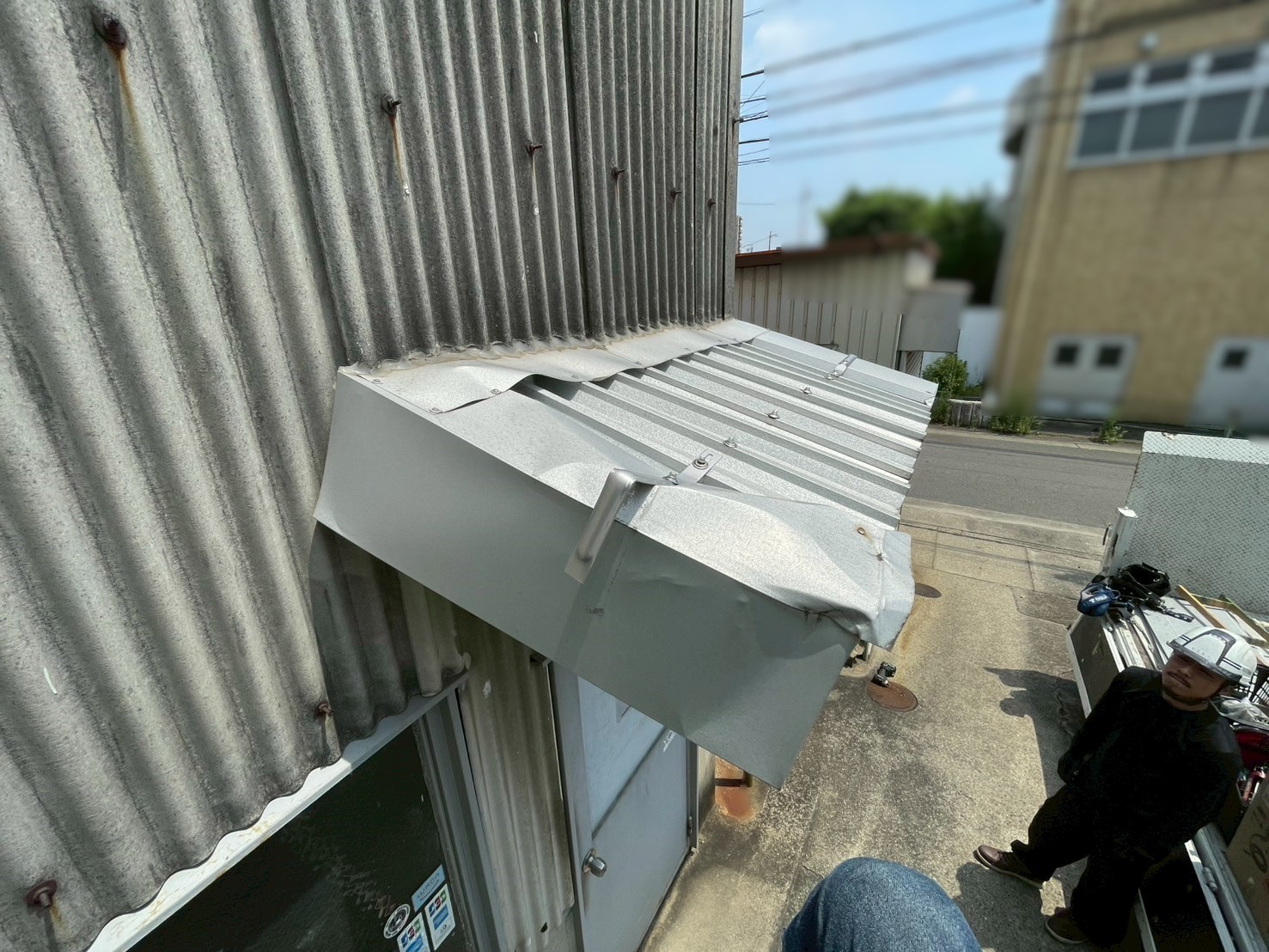 皆さん、こんにちは!街の屋根やさん東濃店です。 恵那市にて、工場の破損した庇の補修工事しました。 工場の入り口の庇です。すでに金属性の折板屋根を使いカバー工法にて改修してあります。片側がぶつけられて破損しています。 お客様の意向を確認して、破損した部分の ...続きを読む2025/07/2 さいたま市岩槻区 外装工事~外壁塗装と屋根カバー工法の現地調査事例