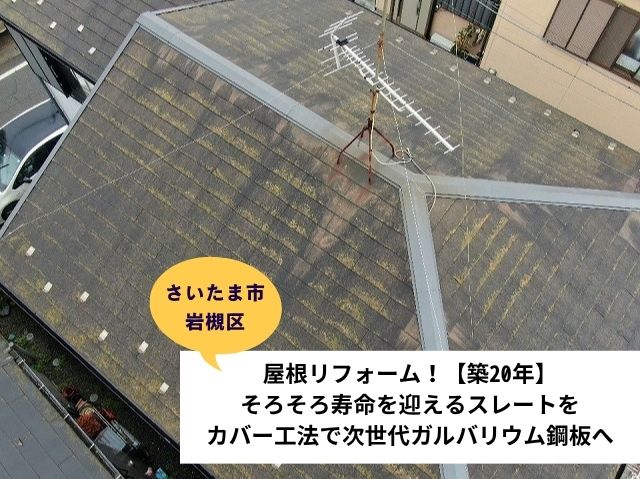 犬山市のみなさま、こんにちは!街の屋根屋さん春日井店です。 今回は、築100年の古民家における瓦屋根の全面葺き替え工事の様子をご紹介いたします。 長年の風雨や地震の影響により、瓦が落下し、屋根に穴が空いてしまった状態でした。桟瓦や大棟のゆがみも目立ち、しっかりとした補修では対応しきれないことか ...続きを読む2025/07/3 さいたま市岩槻区 屋根リフォーム!【築20年】寿命を迎えるスレートをカバー工法で次世代ガルバリウム鋼板へ