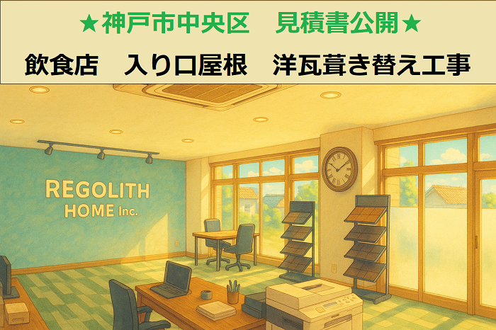 水戸市のみなさん、こんにちは。街の屋根やさん水戸店です。本日は、テラス屋根の解体時に軒天の穴あきが見つかった様子をお届けします。軒天は、軒先の天井部分をいい、多くは板状の建材で覆われています。もちろん、経年劣化や雨漏りなどで破損することも・・・お住まいの中ではあまり目立たない部分ですが、少しでも軒天にご興味を ...続きを読む2025/06/30 神戸市中央区 見積書公開!飲食店 入り口屋根 洋瓦の葺き替え工事