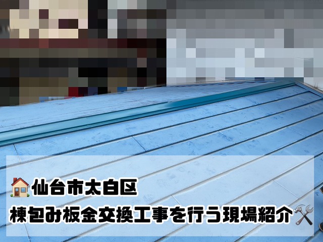 今回は、一宮市の瓦屋根の葺き替え工事が完了しました。HPを御覧になって頂き「天井に染みがある。雨漏れかもしれないから、一度点検してほしい」とご相談を頂いた事がきっかけで葺き替え工事をさせて頂く事になりました。 このお家の屋根は築30年でセメント瓦が葺いてあり ...続きを読む2025/06/30 仙台市太白区『強風で屋根が飛ばされた』養生した箇所の棟包み板金交換工事を行いました!