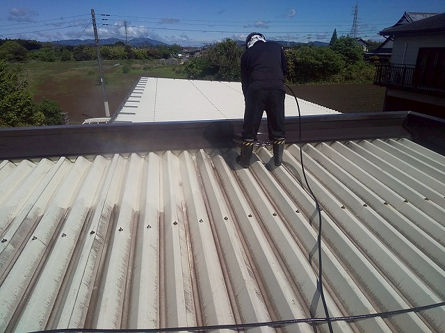 こんにちは。街の屋根やさん名古屋南店です。 今回は、名古屋市熱田区の住宅にてサイディング外壁にさまざまな劣化症状を確認した定期点検について、その内容をご紹介したいと思います。 住宅サイディング外壁の劣化状況について ...続きを読む2025/06/17 石岡市で折板屋根塗装の高圧洗浄工程、苔が付着していた外壁などへのサービス洗浄も