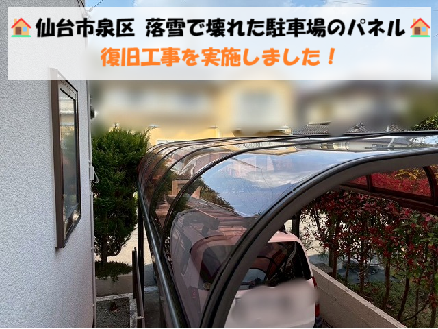✅糸島市の方へ雨漏り調査、雨漏り工事をご紹介|増築部分からの雨漏り 糸島市にお住まいのお客様より、「数年前に増築をした箇所から雨漏りしている気がする」 とのご連絡をいただきました。現場は、母屋に接続する形で増築された一部屋分の増築部分で、屋内に雨染みが発生しており、強い雨の日にはポタポタと水滴が ...続きを読む2025/06/16 仙台市泉区|落雪で壊れた駐車場のパネル|復旧工事を実施しました!