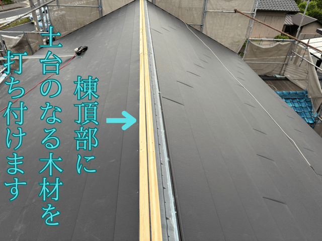 棟用の下地木材をしっかり固定 これまでは大屋根の軒先から平の部分の取り付けが完了してました! 残りは棟の部材を取り付けて完全となります! 今回は棟部の工程をご紹介していきます スーパーガルテクトの屋根において棟部の施工は最後の工程となります! まず、棟板金 ...続きを読む2025/06/15 瀬戸市窯元町で平板瓦工事完了!壁の雨仕舞いまでカッコ良し!