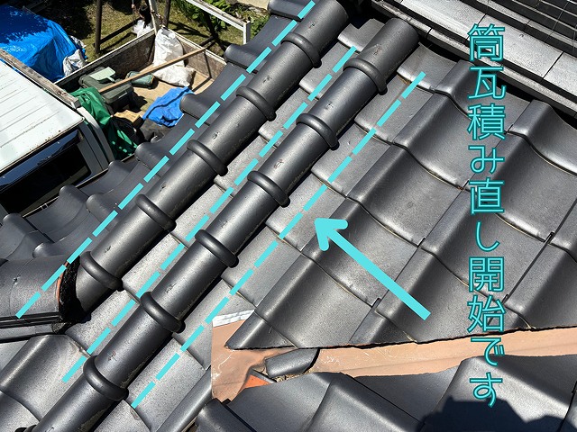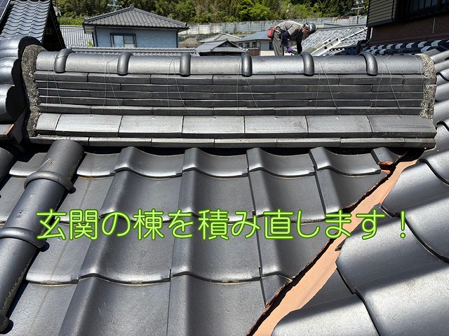 玄関の陸棟の積み直し工事を実施しました 棟めくりから まずは既存の棟をすべてめくる作業からスタート☝️見た目は雨漏りしているわけでは無さそうです。 古い棟 ...続きを読む2025/06/14 瑞浪市にて玄関の筒瓦の漆喰が剥がれていたため葺き直し工事をしました!