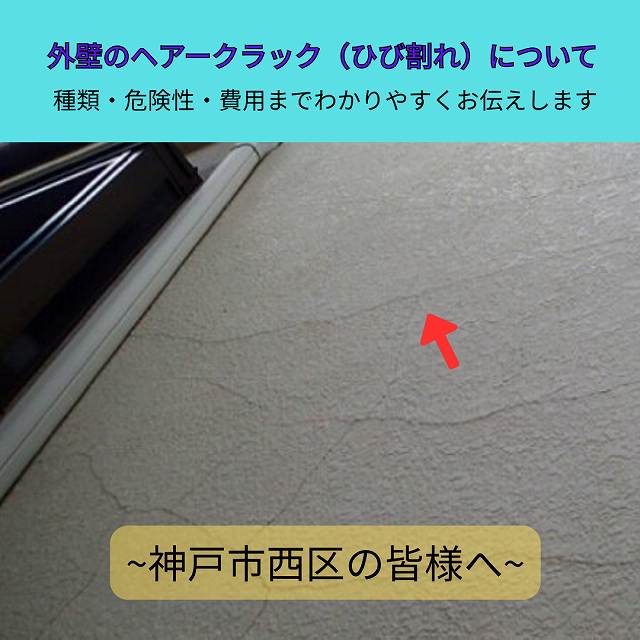 雨樋は家を守る「排水設備」です 雨樋は、屋根に降った雨水を適切に排水するための大切な設備です。しかし、長年使っていると雨樋のつまり・外れ・ゆがみなど、さまざまな不具合が生じます。正常に機能していれば、雨水が外壁を伝ってしまうのを防ぎ、住まいの劣化を防ぎます。とく ...続きを読む2025/06/13 神戸市西区の皆様へ|外壁のひび割れ(クラック)をそのままにするとどうなるの?危険性・種類をわかりやすく解説します💡