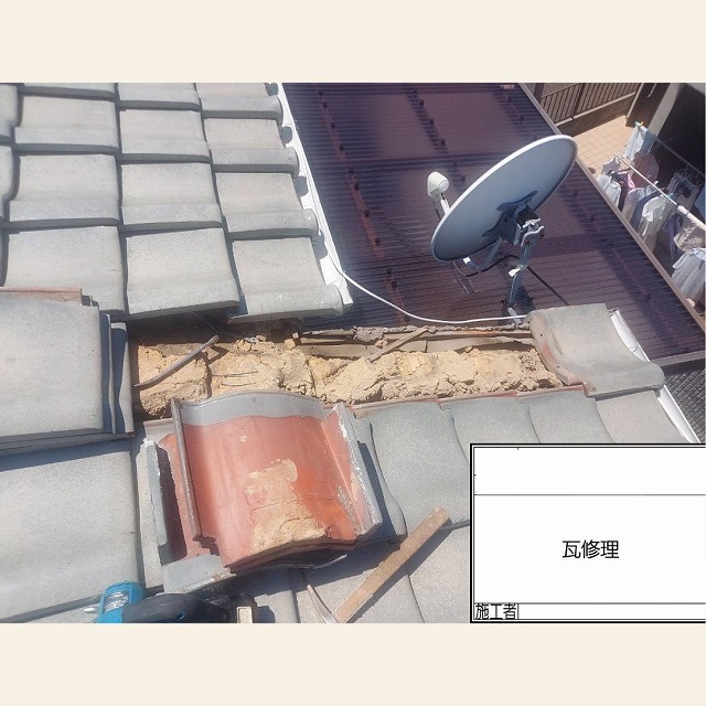 今回はその谷部分にかかる桟瓦が谷板金の上にズレ落ちてしまっていました💦 谷板金に瓦がズレ落ちている 屋根の「谷」は、2つの屋根が合わさって雨水が集中して流れる大切な部分です☔今回はその谷部 ...続きを読む2025/06/14 瑞浪市にて隅棟の積み直し工事スタート!雨が浸透した棟の状態とは!?