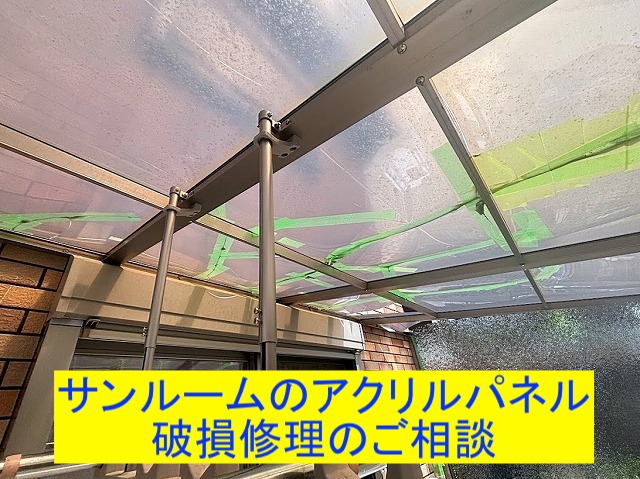 2025/06/10  鹿嶋市 雹と突風が原因で破損箇所が広がったサンルームのアクリルパネル