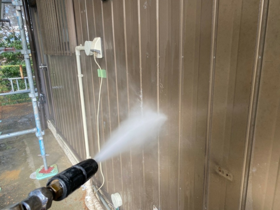 春日井市で屋根リフォームをご検討中の皆様、こんにちは。「街の屋根屋さん春日井店」です。 今回は、築43年の住宅における屋根葺き替え工事の一環として、防水シート(ゴムアスルーフィング)の敷設作業をご紹介いたします。屋根の防水性能を高めるために重要な工程であり、特にカラーベスト屋根やセキスイかわらUなど、経年劣化 ...続きを読む2025/05/28 春日井市皆様へ弊社でおこなった角波板金の外壁を高圧洗浄にて洗い流し作業