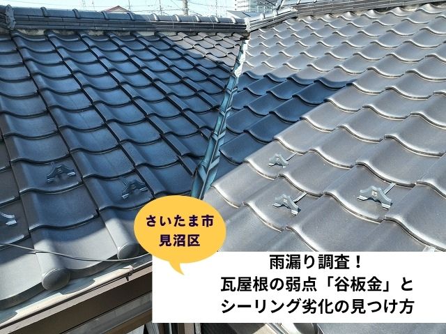 春日井市で屋根リフォームをお考えの皆さま、こんにちは。「街の屋根屋さん春日井店」です。いつもブログをご覧いただきありがとうございます。 今回は、築40年の平家建て物置兼駐車場の建物で、雨漏りと屋根補修のご相談をいただきました。お客様は以前、シロアリ駆除業者に「屋根から雨水が入り込んでいますよ」 ...続きを読む2025/05/28 さいたま市見沼区 雨漏り調査!瓦屋根の弱点「谷板金」とシーリング劣化の見つけ方