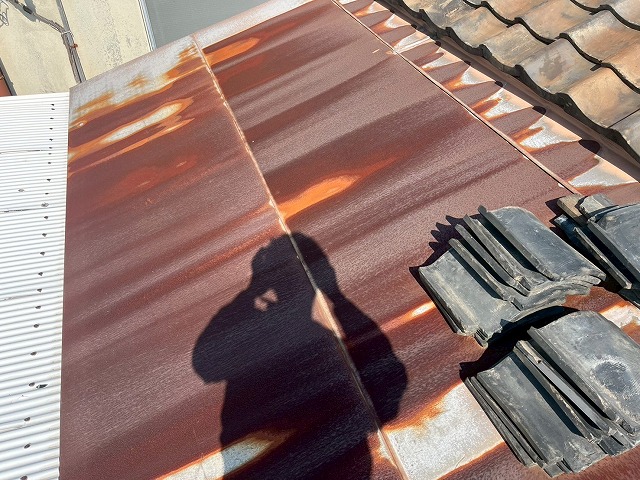 【壁周りの雨押さえ板金】と【雨樋工事】の様子をご紹介 みなさんこんにちはっ! 以前ご紹介した虎渓山町での瓦工事…ついに完成しましたねっ そして今回は、その続き! 屋根工事の“仕上げ編”として【壁周りの雨押 ...続きを読む2025/05/19 京都市伏見区で経年劣化によりサビが進行した棟板金の状態確認、早めの交換工事が推奨されます