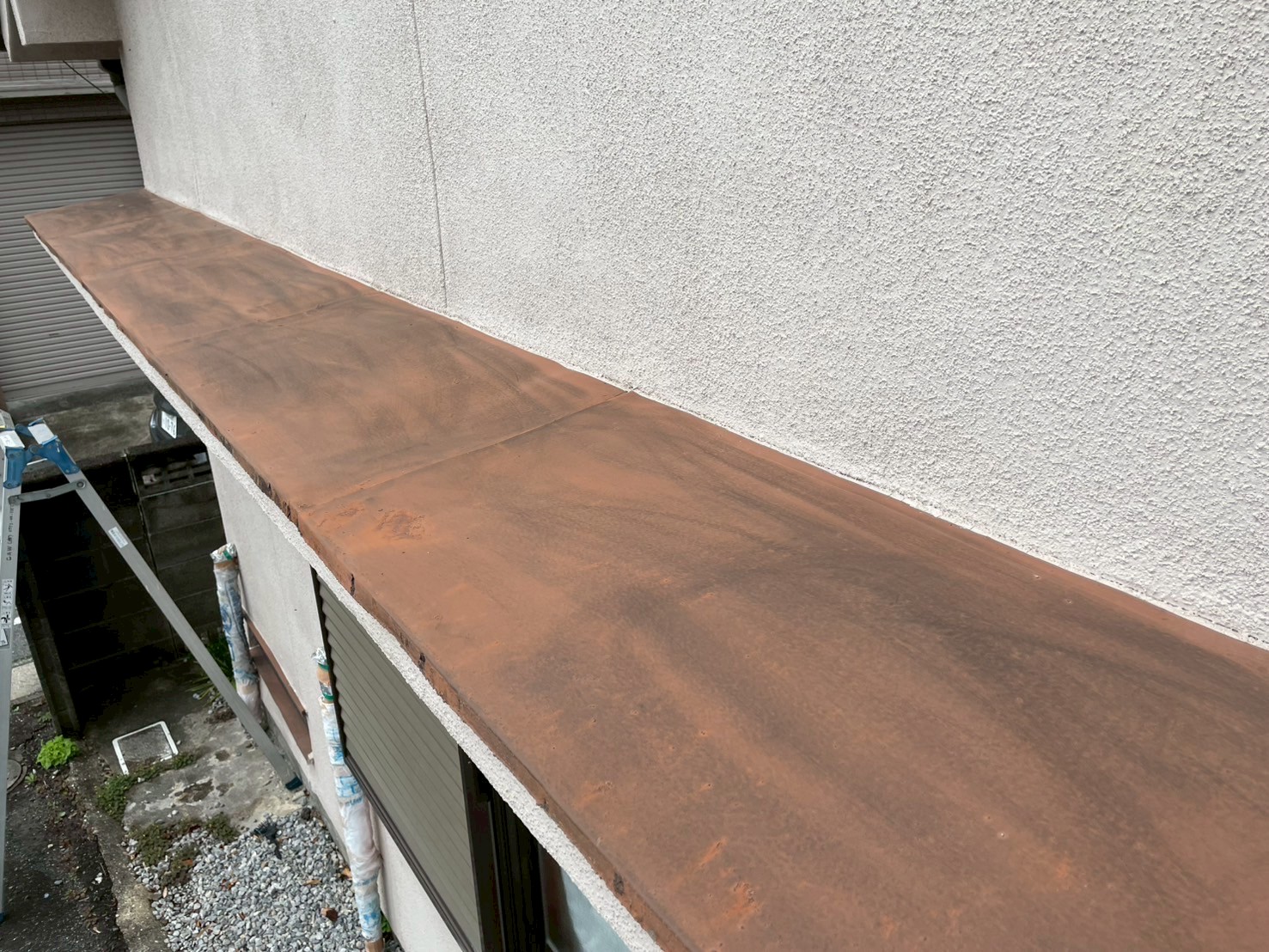 皆さんお疲れさまです!街の屋根やさん高松店の大下です!今日は高松市で「庇の板金が錆びているから見てほしい」とお問合せがあり、点検してきたのでその様子をご紹介させていただきます!皆さんは「庇(ひさし)」と言われてどの部分かわかりますか?イメージしやすい場所で言うと勝手口の上に小さな屋根がついていると思います。そ ...続きを読む2025/05/27 恵那市にて住宅の庇の改修工事をしました 新しい庇で雨の季節に備えます
