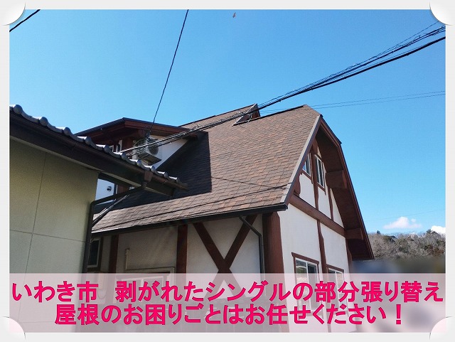 こんにちは、街の屋根やさん 明石・神戸店です🌈今回は、防藻・防カビ高性能添加剤 「アステックプラスSW」 について、塗装のプロとして詳しく、かつ分かりやすくご紹介します! 外壁塗装や屋根塗装を検討しているお客様からよくいただくお悩みのひとつが・・・「せっかく塗装塗装してもまた藻やカビが生えるの ...続きを読む2025/05/13 いわき市にて強風で剥がれたアスファルトシングルの部分張り替え修理工事