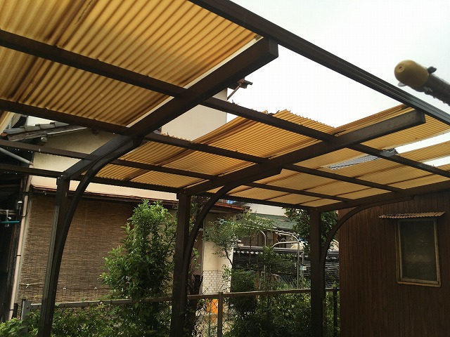 こんにちは。街の屋根やさん名古屋南店です。 前回のブログでは、日進市の和風住宅にて実施する外装木部塗装工事の足場設置と倒れていた縁石の修復の様子をご紹介いたしました。 今回は、木部塗装工事のアク抜き工程について、その施工の様子をご紹介したいと思います。 ...続きを読む2025/05/13 山県市で強風被害により破損が生じた塩化ビニル波板のカーポートの調査、ポリカーボネートでの工事もご提案