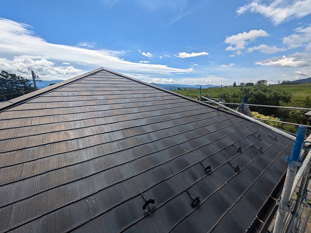 みなさま、こんにちは!街の屋根やさん飯田・伊那店です! 前回のブログでは、飯田市の住宅屋根葺き替え工事にて実施した、エスジーエル鋼板屋根の本体葺きの様子をお伝えいたしました。 今回は、本体葺きの後に行った棟板金と雨押え板金の設置について、その施工の様子をご紹介したいと思います。▼前回までのブログ・飯田市の瓦屋 ...続きを読む2025/05/11 上伊那郡南箕輪村にて塗膜が劣化したスレート屋根へのカバー工法リフォーム、足場設置後の確認調査
