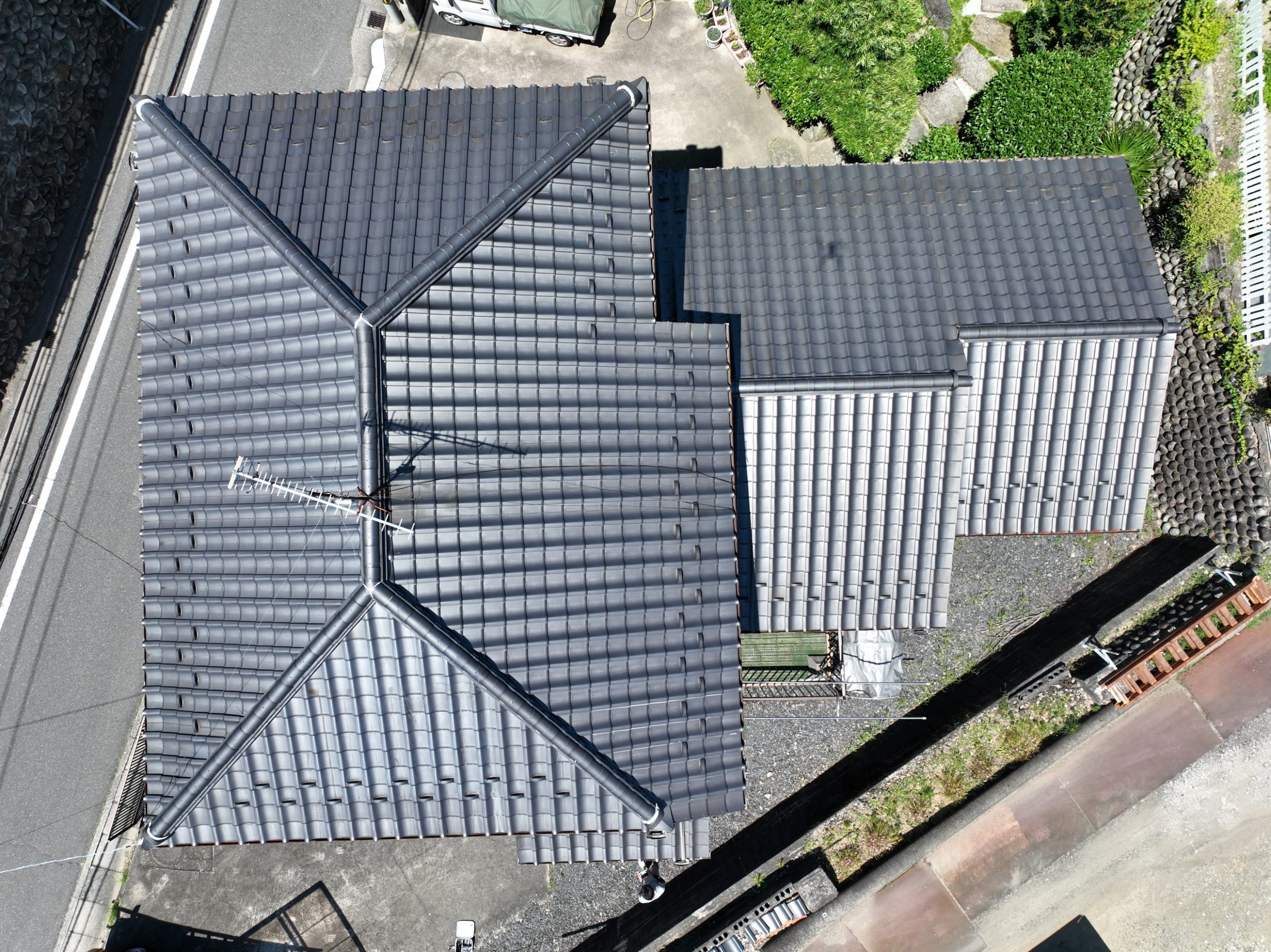 上から見たら一目瞭然!瓦に見える異変 ドローンで屋根全体を撮影すると、棟と呼ばれる屋根の頂点部分にズレがあり、周囲の瓦にも欠けた部分が見られました。 「瓦が欠ける=ちょっとした見た目の問題」と思われがちですが、実はこれが雨水の侵入口になることもあるんです。 ...続きを読む2025/05/9 可児市羽生ヶ丘|棟積み替え、雨樋の調整、軒先瓦ビス固定で完成です!