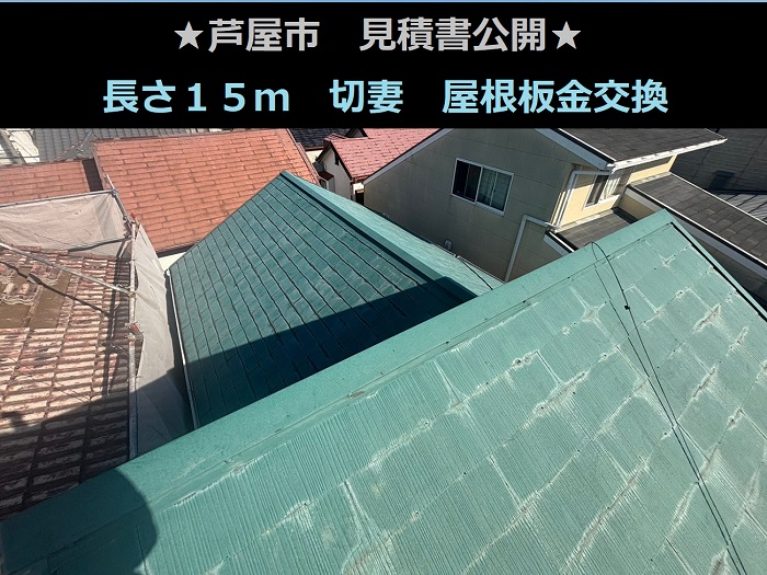 天窓の雨漏りは危険!無料点検で安心の住まいを! 白岡市に周辺にお住いの皆様、こんにちは!街の屋根やさん春日部店です(*'ω'*) 今日は、私たちがお手伝いさせていただいたお客様の、ちょっと困ったお話をご紹介しますね。 「家の天窓から雨漏りして ...続きを読む2025/04/30 芦屋市 見積書公開!長さ15m 切妻スレート屋根 屋根板金交換