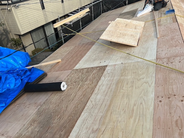 沼津市で瓦屋根の漆喰メンテナンス! 今回は、沼津市にお住まいのお客様よりご依頼いただいた、瓦屋根の漆喰補修工事をご紹介いたします。 沼津市瓦屋根:経年劣化し、汚れやカビが付着した漆喰 ...続きを読む2025/04/17 城陽市で立平葺きの屋根カバー工事実施にあたり防水シート施工中の様子、ルーフィングは雨水の浸入を防ぐ要です