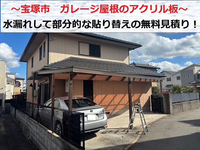 2025/04/9  宝塚市 ガレージ屋根のアクリル板から水漏れ!部分的な貼り替えの無料見積もり