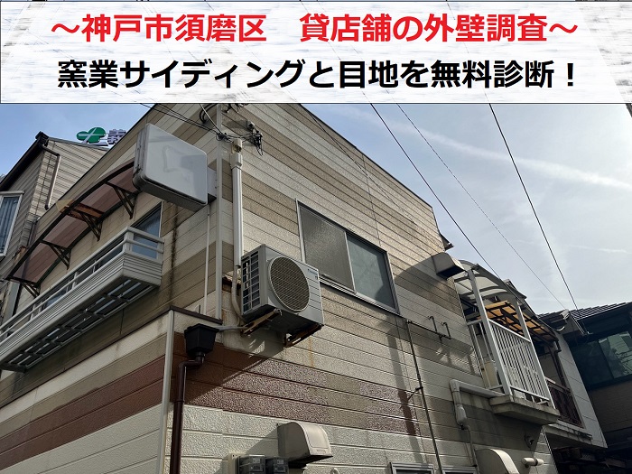 2025/04/9  神戸市須磨区 貸店舗の外壁調査で窯業サイディング本体や目地を無料診断