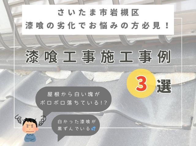 明石市の皆さんこんにちは。街の屋根やさん加古川店です。 今回は「加古川市で平板瓦の谷ズレと棟のビス浮きの調査を行った事例」をご紹介します。 屋根は日々の風雨にさらされているため、経年劣化によるトラブルが起こりやすい部分です。 今回は目視調査によっていくつかの不具合を発見し、補修のご提案をさせていただきました。 ...続きを読む2025/04/8 さいたま市岩槻区の方へ【瓦屋根漆喰工事施工事例3選】のご紹介