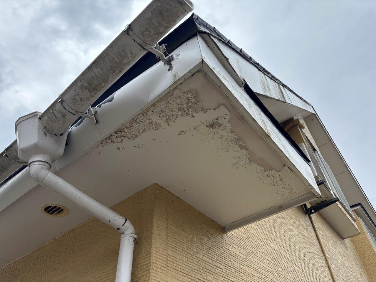 こんにちは、街の屋根やさん堺店です。本日は堺市西区のお客様より「ベランダに物干しがないためホスクリーンを設置したい」とご相談を受け、現地調査を行った様子をご紹介します。調査を行うとサイディング仕上げの壁には設置が難しく、そこで既製品の直置き型物干しをカットして設置する方法をご提案しました。「ベランダに物干しを ...続きを読む2025/03/18 堺市南区で築60年の住宅点検|軒先の崩れ・軒天めくれ・雨樋の脱落など多数の不具合がありました