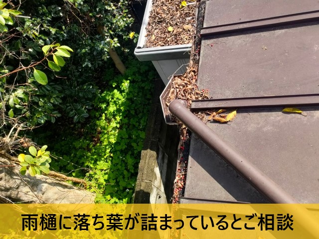 2025/03/18 堺市美原区にて大量の落ち葉が詰まって雨水があふれている雨樋の清掃|雨樋清掃の重要性や詰まる原因・対策は?