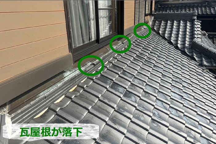 野木町のみなさん、こんにちは。街の屋根やさん栃木小山店です。今回は、築38年のお住まいでご相談いただいた『屋根と軒天の点検』の様子をご紹介します。建物は、一般的に塗膜(塗装)によって防水性を確保して、雨水による劣化を防いでいるんです。しかし、塗膜は紫外線により自然と劣化するので、時間とともに撥水性がなくなりま ...続きを読む2026/02/13 泉佐野市の下屋にお隣の家の瓦が落ちてきて被害に遭いました!