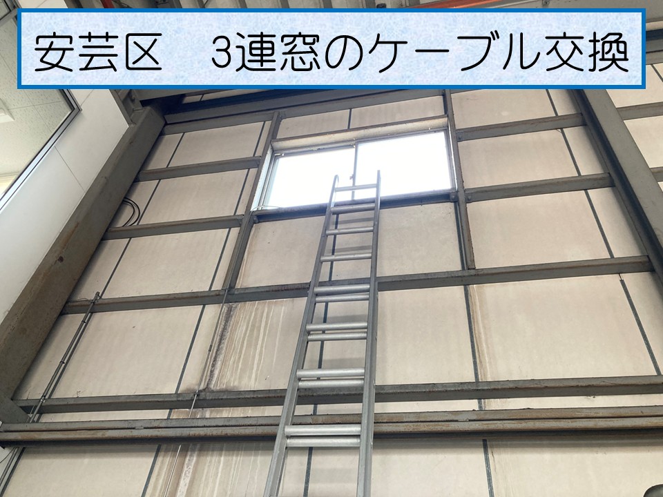2025/03/6  広島市安芸区、開閉できなくなった工場の3連排煙窓のケーブルを交換!