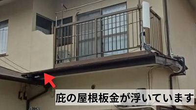 2025/03/5  高松市 カラーベスト屋根の調査、庇の屋根板金の浮きから庇やり替えをご提案しました