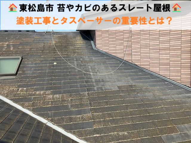 岐阜市で雨漏り被害が発生し、点検を実施した事例記事の続きを紹介していきます。雨漏り原因は経年劣化により穴あきが生じた谷板金だったため、交換工事をご提案し工事のご依頼をいただく流れとなりました。前回の記事 ↓ 【岐阜市で銅板の劣化による雨漏りが生じ谷板金の調査、交換工事をご提案いたしました】今回は谷板 ...続きを読む2025/03/3 東松島市 苔やカビのあるスレート屋根 クリニックの塗装工事とタスペーサーの重要性とは?
