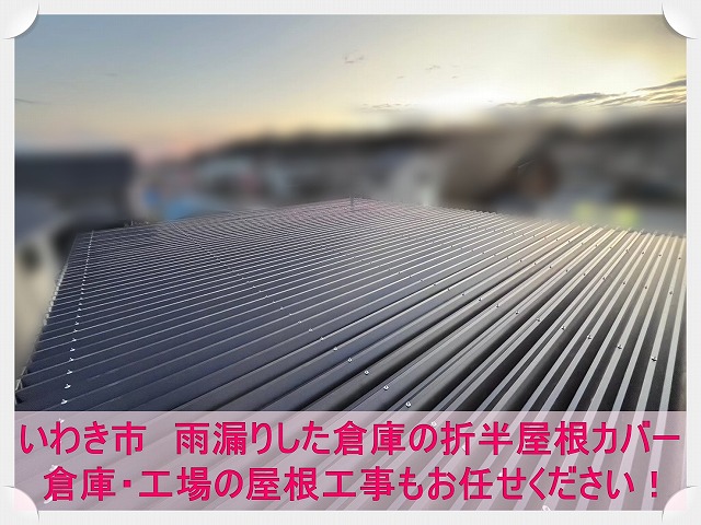 こんにちは、街の屋根やさん 明石・神戸店のスタッフです✨いつもblogをご覧いただきありがとうございます。 今日は、神戸市垂水区H様邸での外壁・屋根塗装工事がついに完工しましたので全体の様子をお伝えしたいと思います!施工の様子や使用した塗料について、詳しくご紹介いたしますね😊 ...続きを読む2025/03/3 いわき市にて屋根に穴が空いて雨漏りした倉庫の折半屋根カバー工事を実施