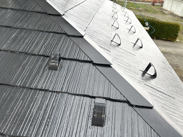 みなさま、こんにちは!街の屋根やさん飯田・伊那店です! 前回のブログでは、上伊那郡南箕輪村の住宅屋根塗装メンテナンスにて実施した、3回塗り工程の下塗りの様子をお伝えいたしました。 今回は、下塗りの後に行った中塗りと上塗りについて、その施工の様子をご紹介したいと思います。▼前回までのブログ・上伊那郡南箕輪村の住 ...続きを読む2025/03/2 豊田市巴町にて2階建て住宅のセメント瓦の棟瓦積み替え工事!乾式工法で下屋根もバッチリ!完結編です!