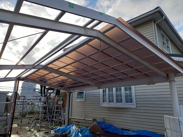 皆さんお疲れ様です。街の屋根やさんつくば稲敷店です。 前回のブログでは、つくば市の住宅カーポートの波板張り替え工事にて実施した、木下地の部分補修の様子をお伝えいたしました。 今回は、カーポート屋根に対するポリカ波板の張り施工について、その様子をご紹介したいと思います。▼前回までのブログ・つくば市の住宅カーポー ...続きを読む2025/02/28 つくば市にて雨水の影響を受けて傷んでいたカーポート屋根木下地に対する部分補修