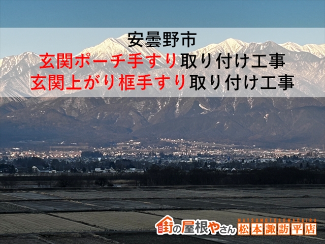 こんにちは!街の屋根やさん神戸店です(*^^*) 今回の現場ブログでは、神戸市須磨区でおこないました雨漏り修理や屋根工事の事例と、工事後にお客様からいただきました口コミアンケートを3つご紹介させていただきたいと思います! ①瓦屋根葺き替え工事②スレート差し替え補修工事③屋根カバー工事神戸市須磨区で ...続きを読む2025/02/28 安曇野市:玄関ポーチ手すり取り付け工事:玄関上がり框手すり取り付け工事