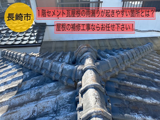 八尾市で二階建ての連棟住宅で、空いてた部屋に入居希望者が現れたため屋根点検のご相談をいただいた事例を紹介していきます。弊社では今回のように賃貸物件の調査にもおうかがいしておりますので、賃貸オーナー様もお気軽にご相談ください!現地調査の結果、アンテナが3本倒れていたり、屋根材に使用されている釉薬瓦がズレていたり ...続きを読む2025/02/25 長崎市 1階セメント瓦屋根の雨漏りが起きやすい箇所とは?屋根の補修工事ならお任せ下さい!