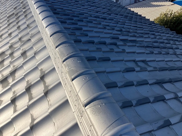 宇都宮市でダイナミックTOPを使いALC外壁中、上塗りをしました。 ALC外壁上段の上塗り塗装中です。 板金との取り合いや入隅など、ローラーではきれいに塗装できない部分に刷毛で塗料を塗り込みながら、平面をローラ ...続きを読む2025/02/25 坂戸市 瓦屋根葺き直し工事3選!既存の屋根瓦を再利用しつつ、屋根の耐久性を高めましょう♬