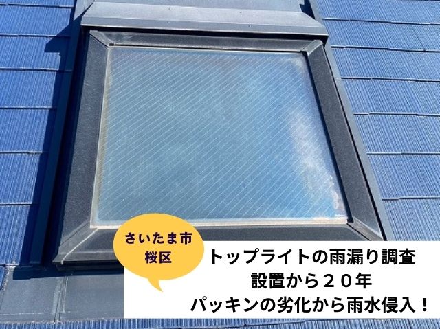 こんにちは✌♡街の屋根やさん川口店です(*^-^*)ココ数日風の強い日が続いておりますが皆様体調など崩されておりませんでしょうか?本日は経年劣化によりボロボロになってしまった屋根を葺き替え工事にてリフォームしたのでご紹介させていただきます。 〇既存屋根〇 ...続きを読む2025/02/25 さいたま市桜区 トップライトの雨漏り調査:設置から20年~パッキンの劣化から雨水侵入!