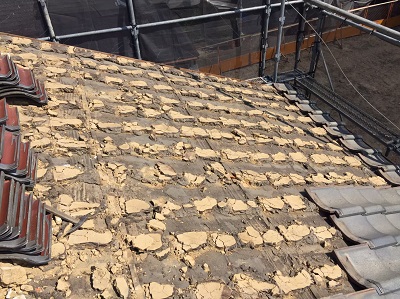 着工初日:重い瓦屋根を解体し、建物の負担を軽減 伏見区での屋根葺き替え工事、着工初日の現場レポートです。重いシルバー瓦と土を撤去し、軽量なスレート屋根(コロニアルクアッド)へリフォーム。野地板の点検から、ゴムアスルーフィングによる防水工事までの工程を詳しく解説します。まず ...続きを読む2026/01/9 沼津市で台風の強風の影響により棟、平瓦が破損しました。