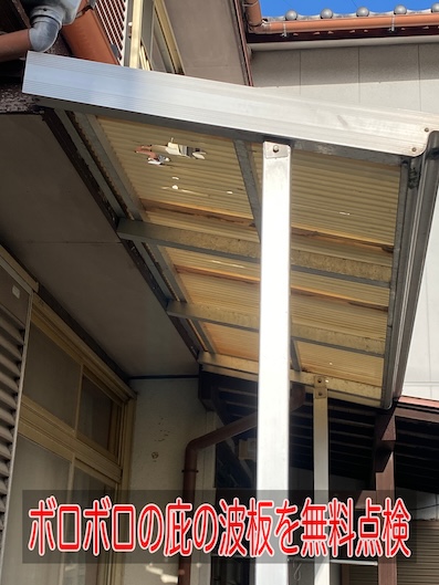 宇都宮市で老朽化した切妻屋根のスレートを金属にカバー工事 施工前の屋根の状態です 昨日、ルーフを貼り始めた状態で、今日は西、東面と貼り進めていきます ルーフの加工中です 谷樋や棟との角度を測ってから墨を打ち、電動はさみでカットしていきます 加 ...続きを読む2026/04/27 浜松市|ボロボロの庇の波板を無料点検、交換時期と費用・放置リスクも紹介します