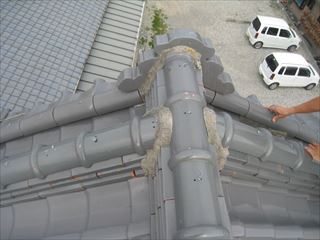 屋根全体の様子|経年劣化が進行している状態 今回、可児市兼山にて屋根点検のご依頼をいただきました。ドローンで屋根全体を確認したところ、瓦の色褪せや汚れが目立ち、全体的に経年劣化が進行している様子が見受けられました。特に、屋根の広い範囲で色ムラが発生しており ...続きを読む2026/04/27 大和高田市で棟瓦が崩落!重い青緑瓦から超軽量なガルテクトへ葺き替える下地作り【ブログ】