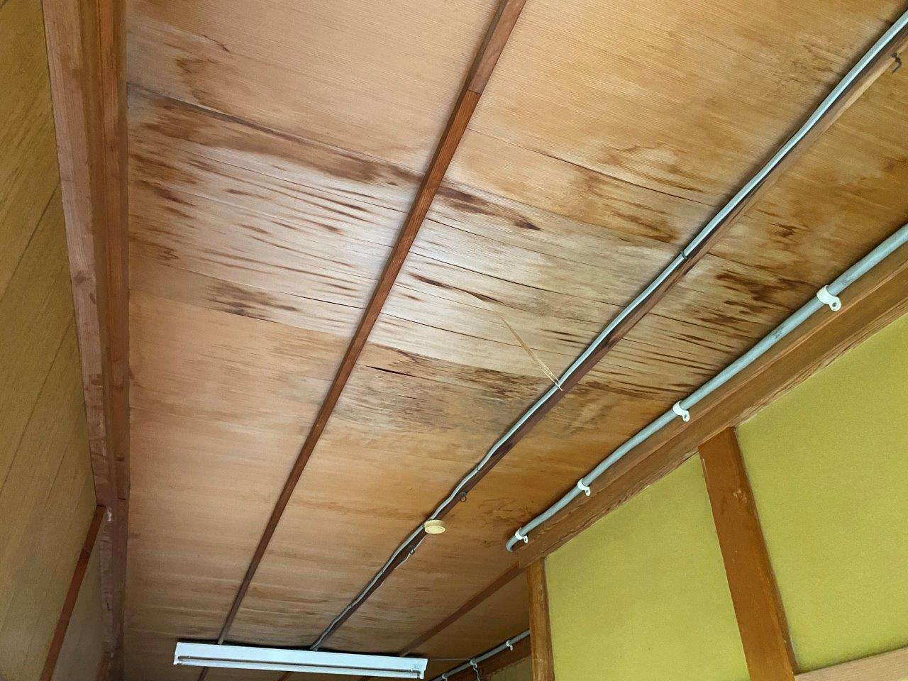 岸和田市大沢のI様より「部屋の壁に雨漏りしてるので見に来てもらえませんか?」とご相談があり、現地調査 ...続きを読む2025/12/20 泉佐野市鶴原の天井の雨漏りでクロスに水が溜まった事例・修理と庇の補修